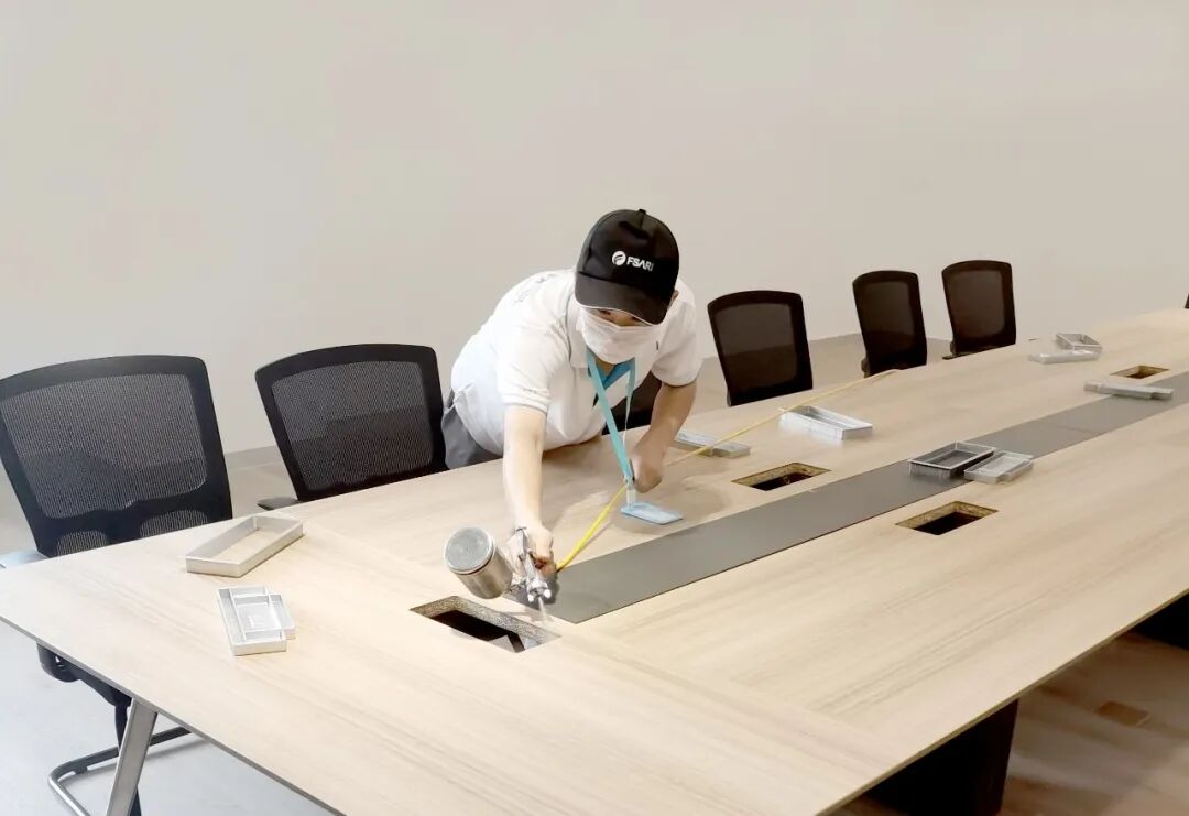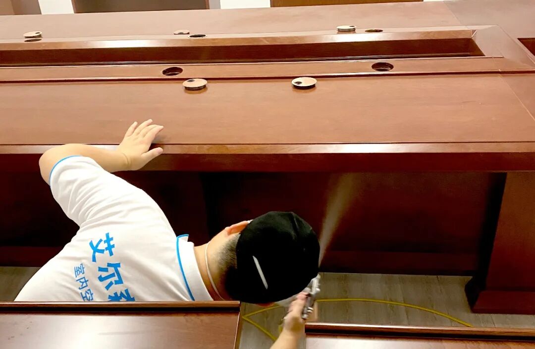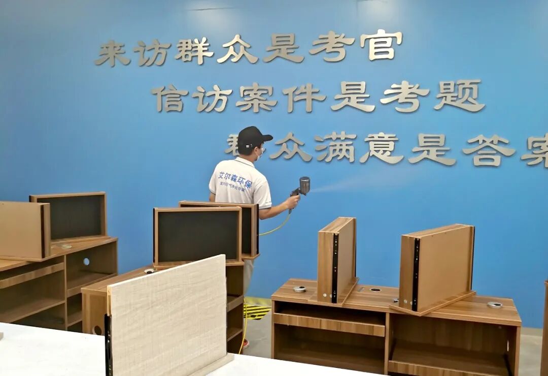 確認(rèn)治理方案后,艾爾森工程師嚴(yán)格按照六大施工流程對(duì)現(xiàn)場(chǎng)進(jìn)行了專(zhuān)業(yè)精細(xì)化除醛除味。在施工治理過(guò)程中對(duì)所需噴涂地方遵循三大噴涂原則,先醛后味、先重后輕、先治理人造板材后治理墻面布藝,少量多遍,對(duì)室內(nèi)污染源進(jìn)行了全面治理。通過(guò)艾爾森工程師精細(xì)化施工,高效有序地完成了本次治理項(xiàng)目,行政服務(wù)大廳空氣質(zhì)量達(dá)到了國(guó)家標(biāo)準(zhǔn)以?xún)?nèi),同時(shí)也得到了客戶(hù)的好評(píng)。