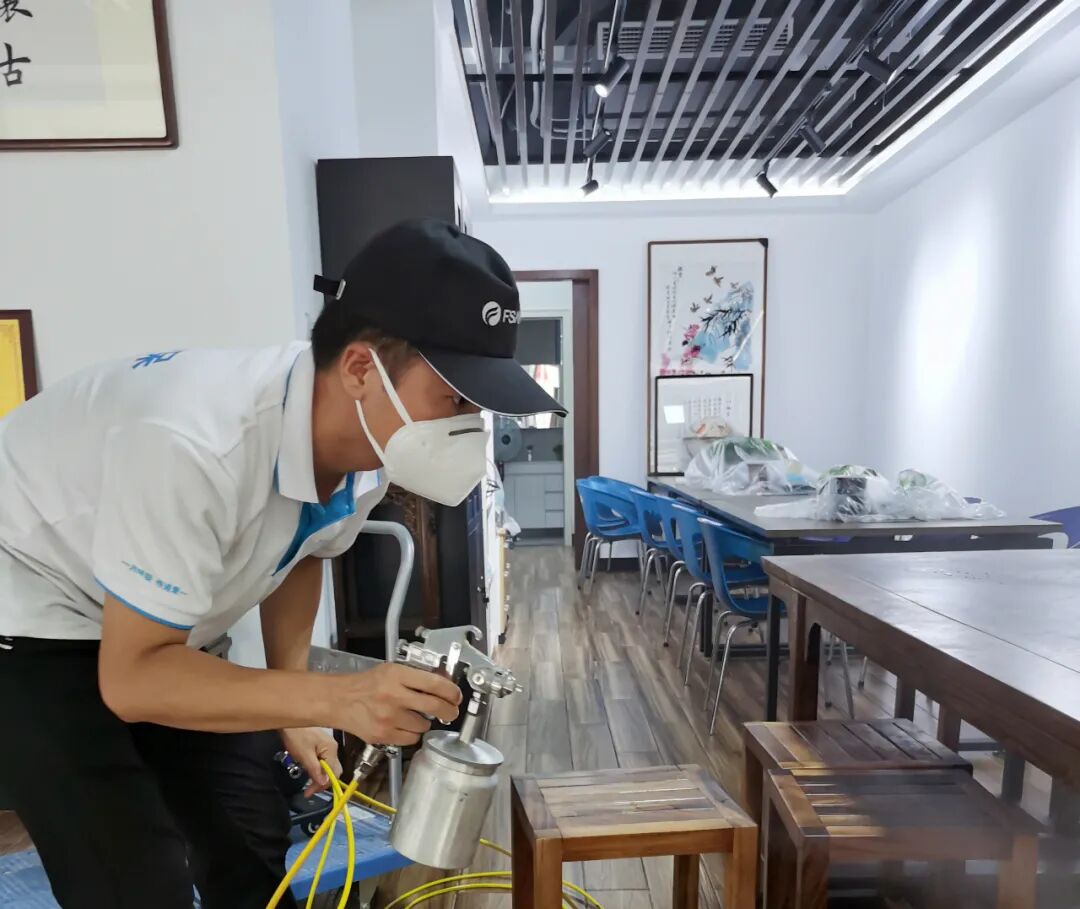 確認(rèn)治理方案后,艾爾森工程師嚴(yán)格按照六大施工流程對現(xiàn)場進(jìn)行了專業(yè)精細(xì)化除醛除味。在施工治理過程中對所需噴涂地方遵循三大噴涂原則,先醛后味、先重后輕、先治理人造板材后治理墻面布藝,少量多遍,對室內(nèi)污染源進(jìn)行了全面治理。通過艾爾森工程師精細(xì)化施工,高效有序地完成了本次治理項(xiàng)目,室內(nèi)空氣質(zhì)量達(dá)到了國家標(biāo)準(zhǔn)以內(nèi),同時(shí)也得到了客戶的好評。